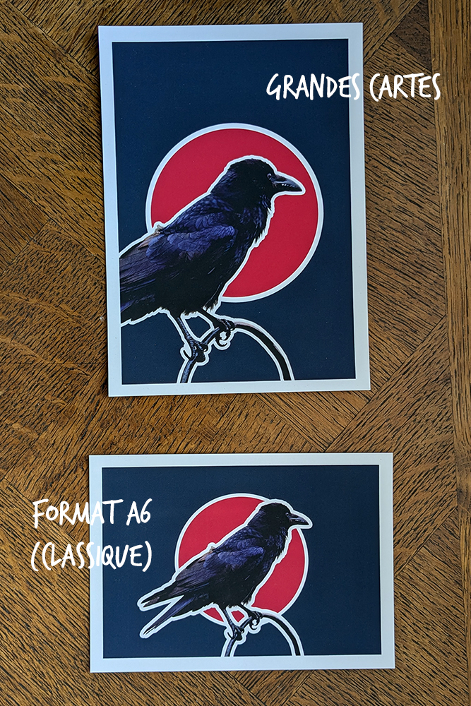 Choix du transporteur : les petites commandes de papeterie et les Tirages A5 sont envoyés en Lettre Verte avec ou sans suivi La Poste (forfait 3,90€). Les plus grosses commandes et les Tirages Fine Art A4 et + sont envoyés via Colissimo (forfait 6,90€).