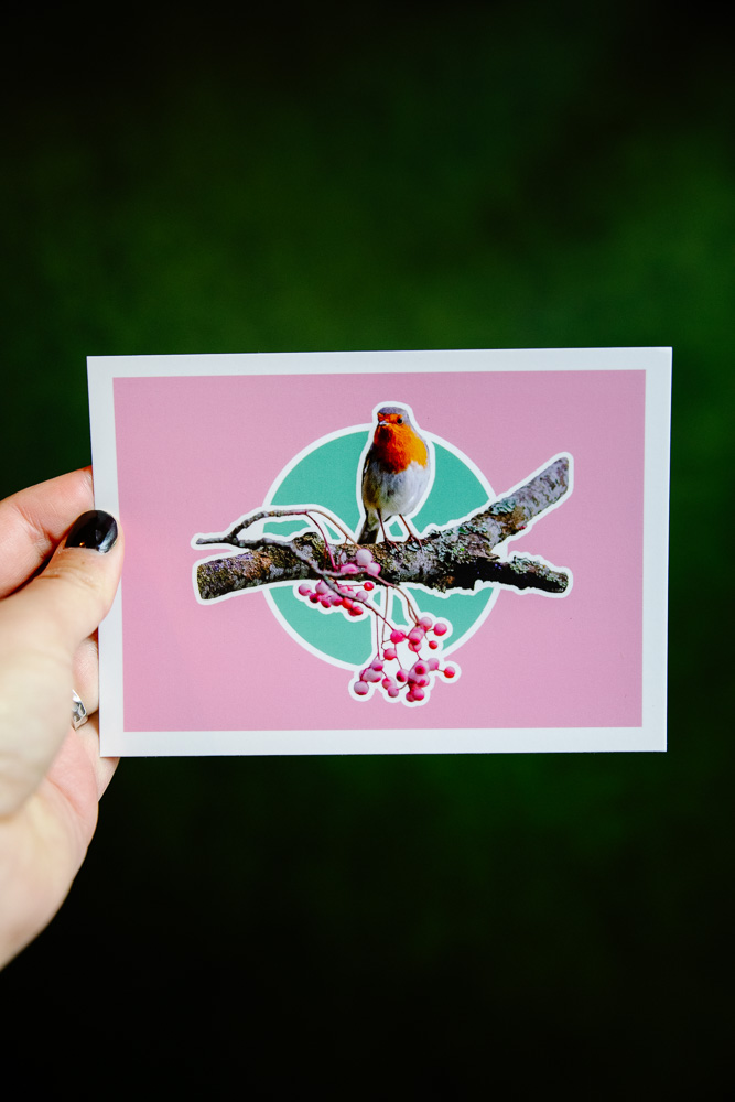 Carte A6 Rouge-Gorge – Rose Vert