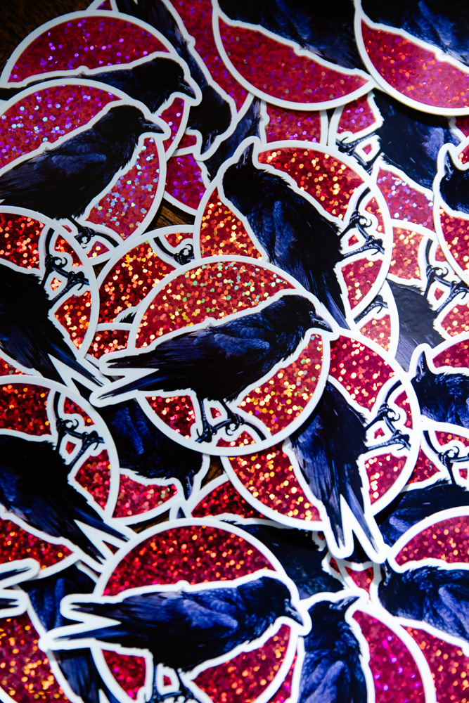 Sticker Corbeau « Gobe Cerise » Paillettes Rouges