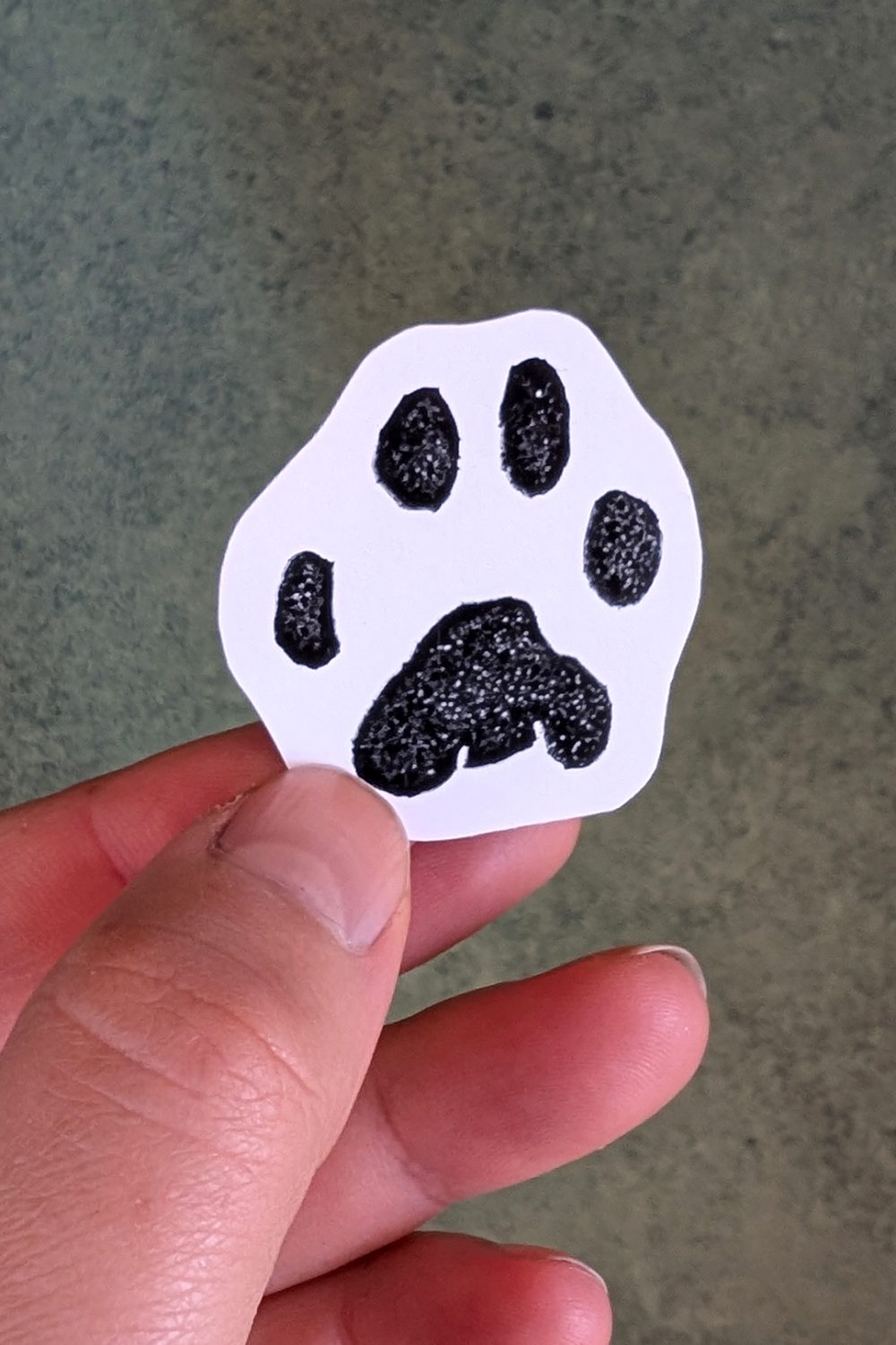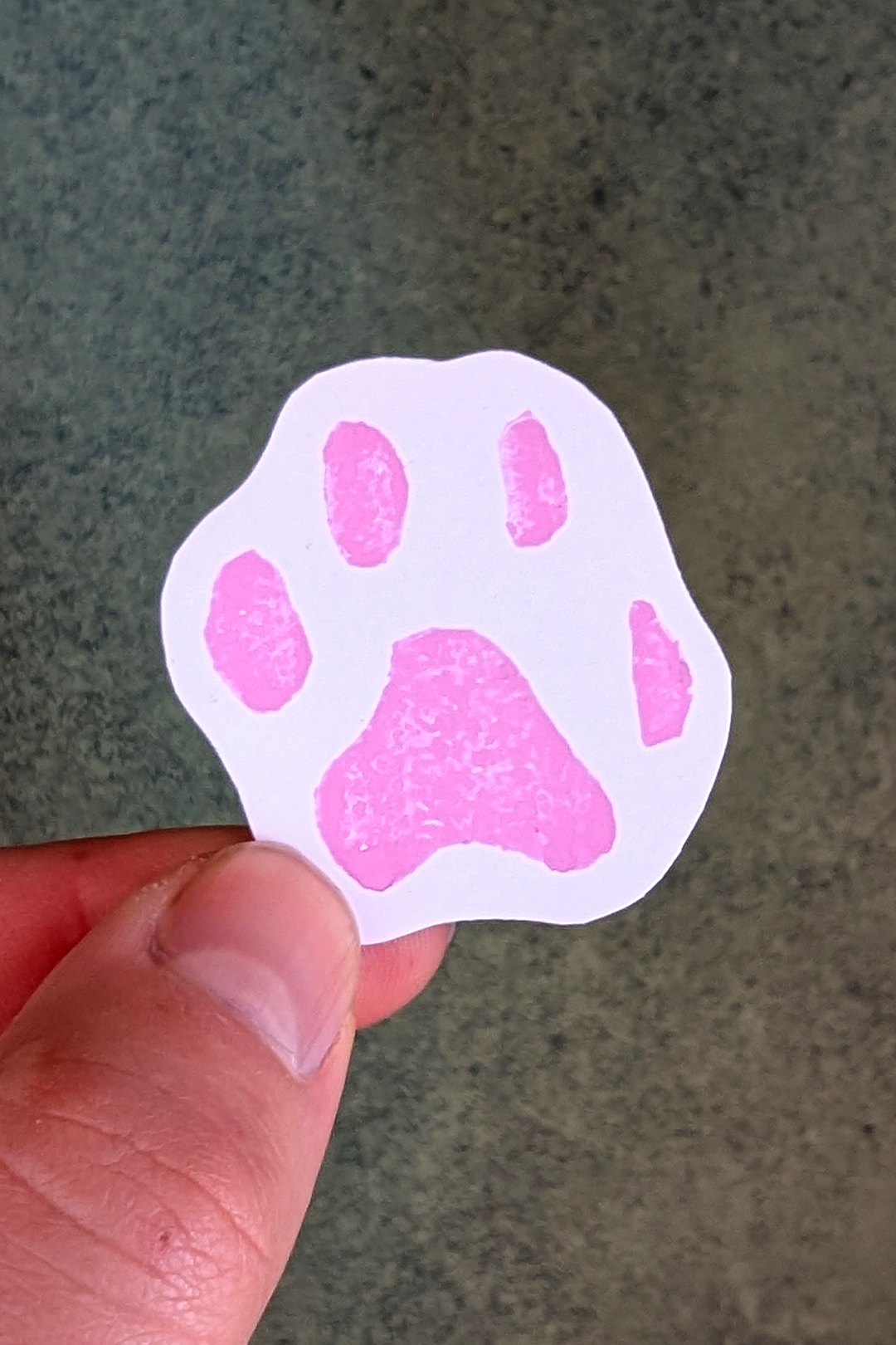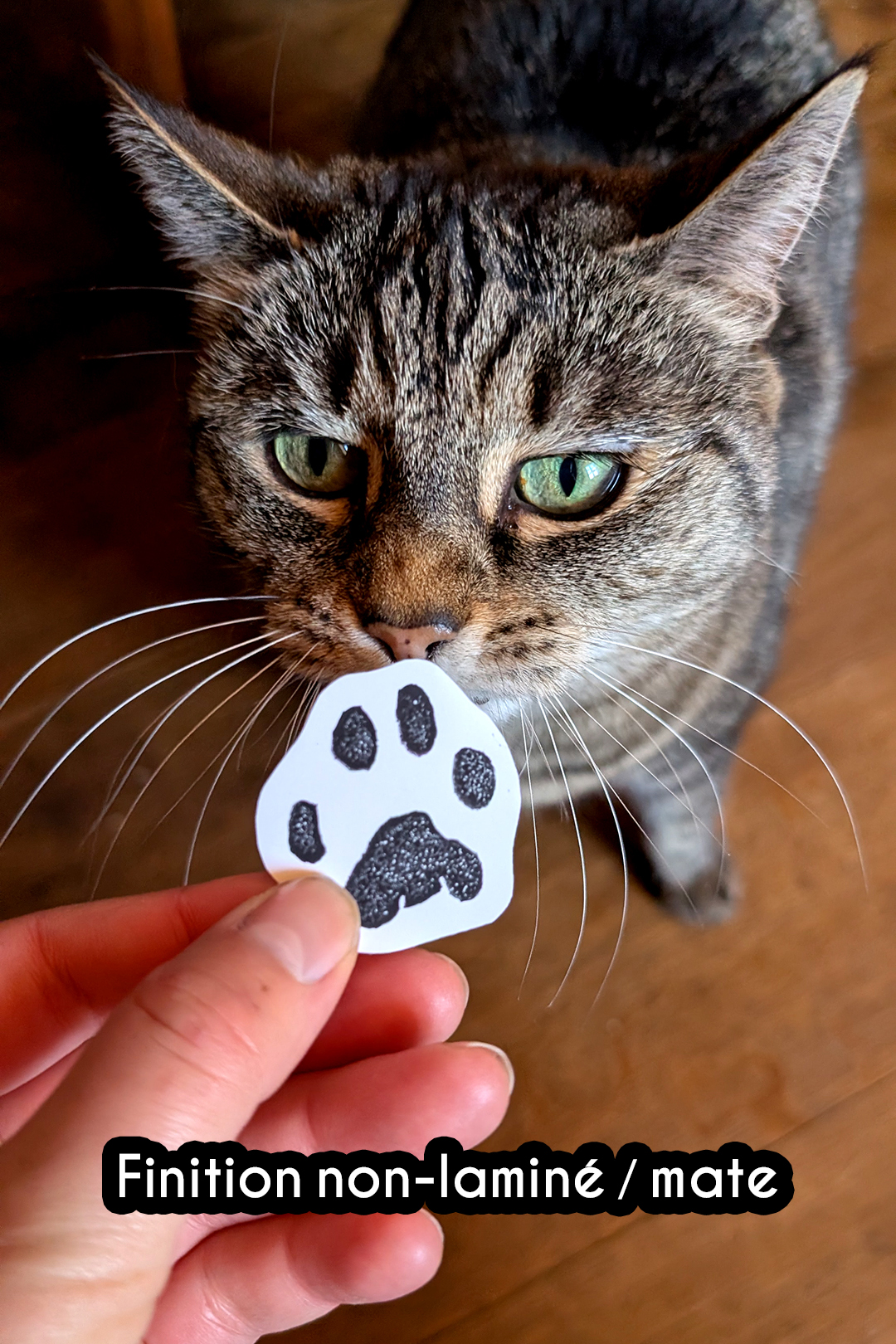 Sticker Patoune de chat en Linogravure, linogravure et impression à la main, sur papier à Sticker MAT, taille approximative 3,5*4cm.
