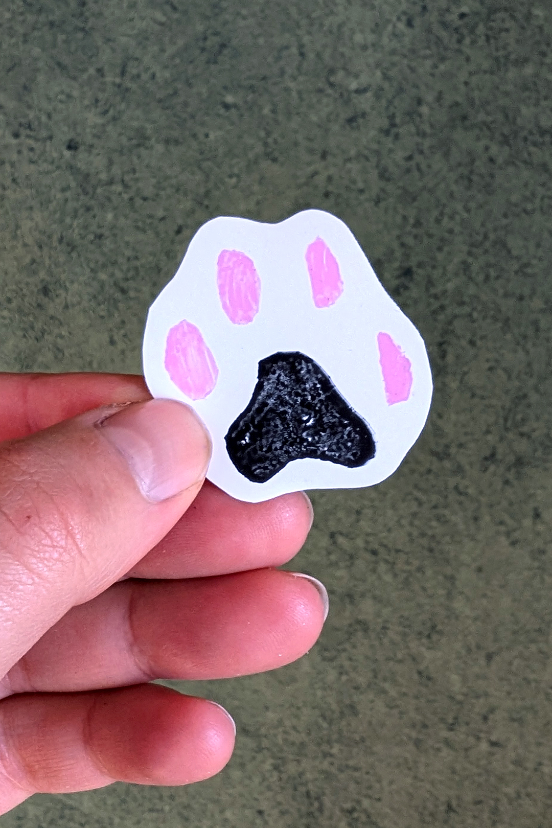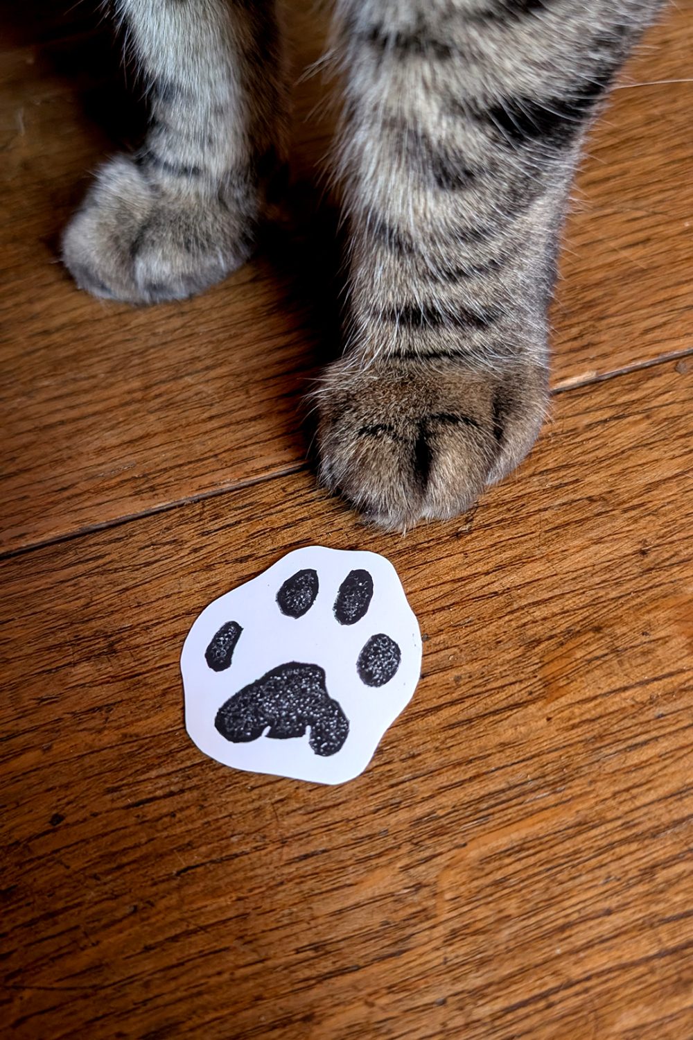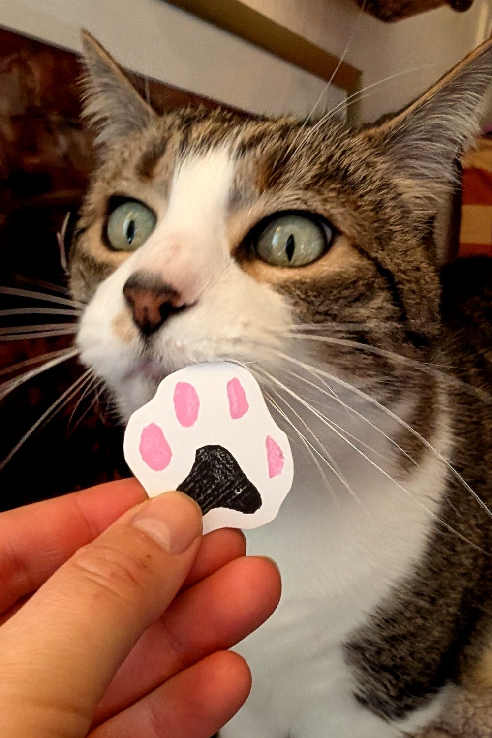 Sticker Patoune de chat en Linogravure, linogravure et impression à la main, sur papier à Sticker MAT, taille approximative 3,5*4cm.