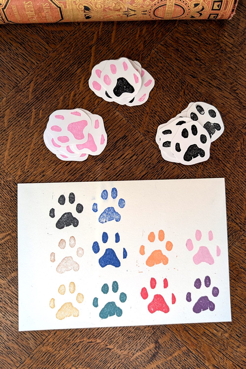 📷 Linogravures réalisées à partir de photos des patounes de Tyrion et Lili en 2026.